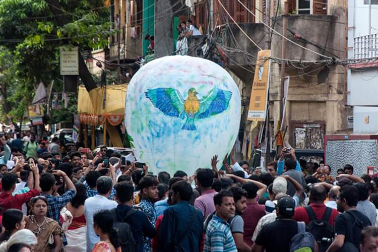 তার আগে নীলকণ্ঠ পাখি ডানা মেলে মনের আকাশে। নীল আকাশে তার ওড়া এখন নিষেধ। তাই সে জায়গা পেয়েছে ফানুসের গায়ে। গত বছর থেকে এই ফানুস পর্ব শুরু হয়েছে শোভাবাজার রাজবাড়ির ছোট তরফের পুজোয়। এ বছরও বাড়ির সদস্য প্রবীরকৃষ্ণ দেবের উদ্যোগে তৈরি হচ্ছে দু’টি ফানুস। একটির গায়ে আঁকা হবে নীলকণ্ঠ পাখি। অন্যটিতে শোভাবাজার রাজবাড়ির ইতিহাস। প্রথমটি উড়িয়ে দেওয়া হবে নিরঞ্জনের আগে। অন্যটি ওড়ানো হবে মাঝ গঙ্গায় পৌঁছে।