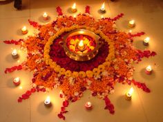 আবির এবং ফুল দিয়ে অনেকে পছন্দ করেন নানা নকশার রঙ্গোলিতে ঘরসাজাতে। আপনার পছন্দ অনুযায়ী ফুল কিংবা আবির বেছে নিয়ে রঙ্গোলি করতে পারেন পুজোর ঘরের ঠিক মাঝখানে।