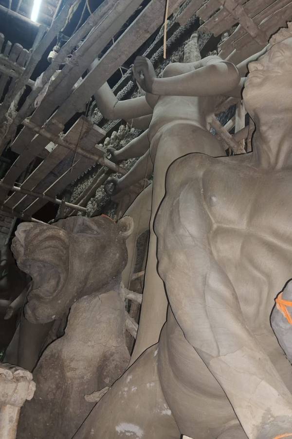 বাগুইআটি এলাকা থেকে রাজারহাট থানা বাসস্টপে নামলে পাশেই এই পুজোর প্যান্ডেল।