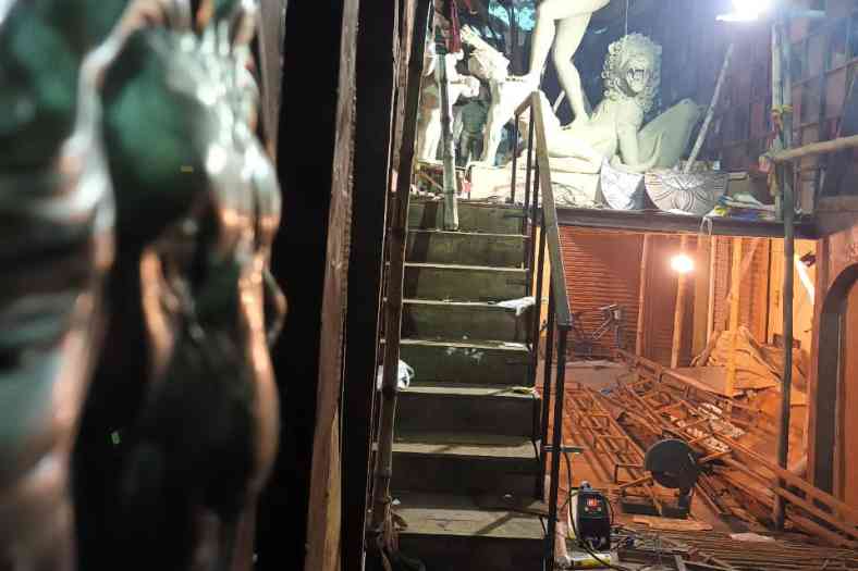 এ বার পুজো নব পত্রিকাকে! রাজবাড়ির আদলে তৈরি হচ্ছে মণ্ডপ
