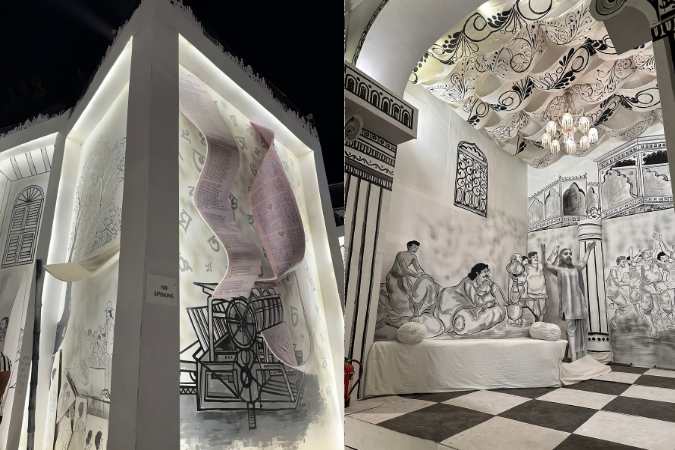 রঙের বাড়বাড়ন্ত ছাড়াও যে চোখ ধাঁধানো মণ্ডপসজ্জা সম্ভব তাই করে দেখাল এই পুজো।