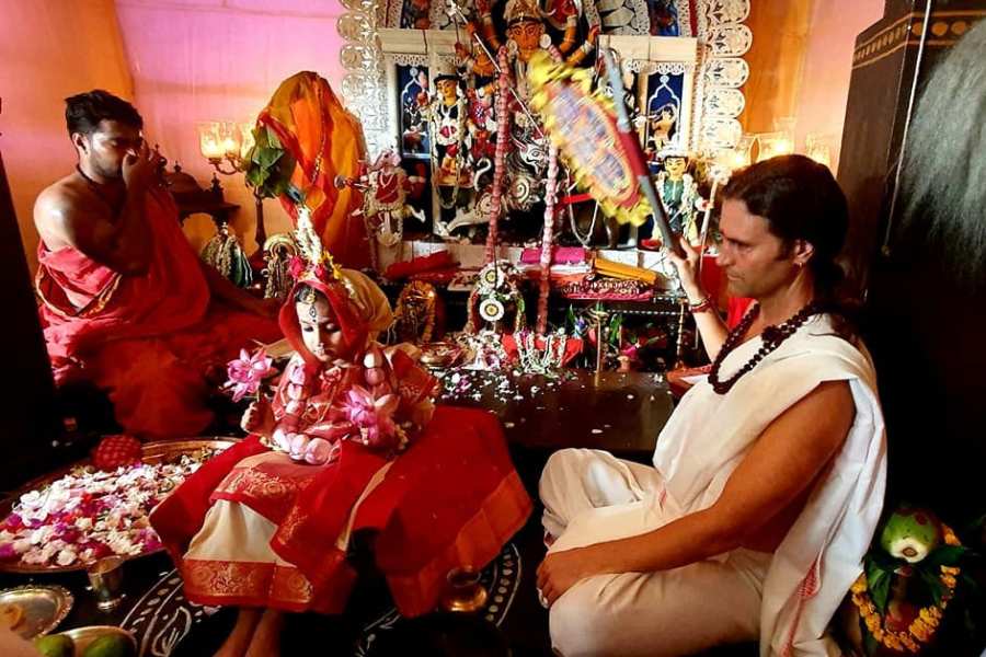 শাস্ত্রীয় মত মেনে পুজো অনেক বনেদি বাড়িতেই হয়। তবে আলিপুরে নিজের বাড়িতে হ্যালি গোস্বামীর পুজো সম্পূর্ণ আলাদা। নিজে মূর্তি তৈরি করেন হ্যালি। পুজোও করেন নিজেই।