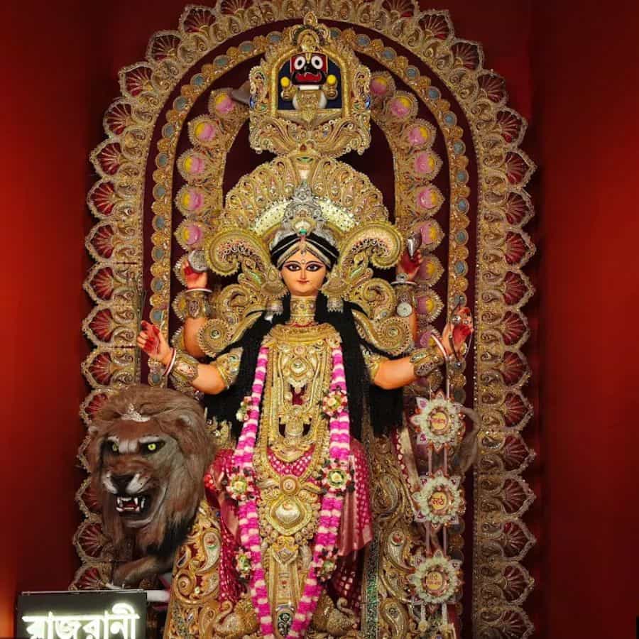 পাহাড়ের মেজাজ নিয়ে মণ্ডপে প্রবেশ করতেই প্রথমে চোখে পড়বে সিদ্ধিদাতা গণেশের প্রতিমা। তার পাশেই রয়েছে দেবাদিদেব মহাদেবের বিশাল মূর্তি। আর একে বারে শেষে, গর্ভগৃহে অধিষ্ঠাত্রী দেবী জগদ্ধাত্রী। প্রতি বারের মতোই প্রতিমার উচ্চতা তাক লাগানোর মতো। এই বারের প্রতিমার নাম রাখা হয়েছে — 'রাজরানি'। সুবর্ণ অলঙ্কার, লাল বেনারসি শাড়িতে সেজে হাস্যময়ী দেবী যেন সত্যিই এক রাজকীয় রূপে বিরাজ করছেন। দেবীর মূর্তির ঠিক উপরেই স্থান পেয়েছেন জগন্নাথ দেব। চলছে অঘোরীদের লাইভ পারফর্মেন্স।