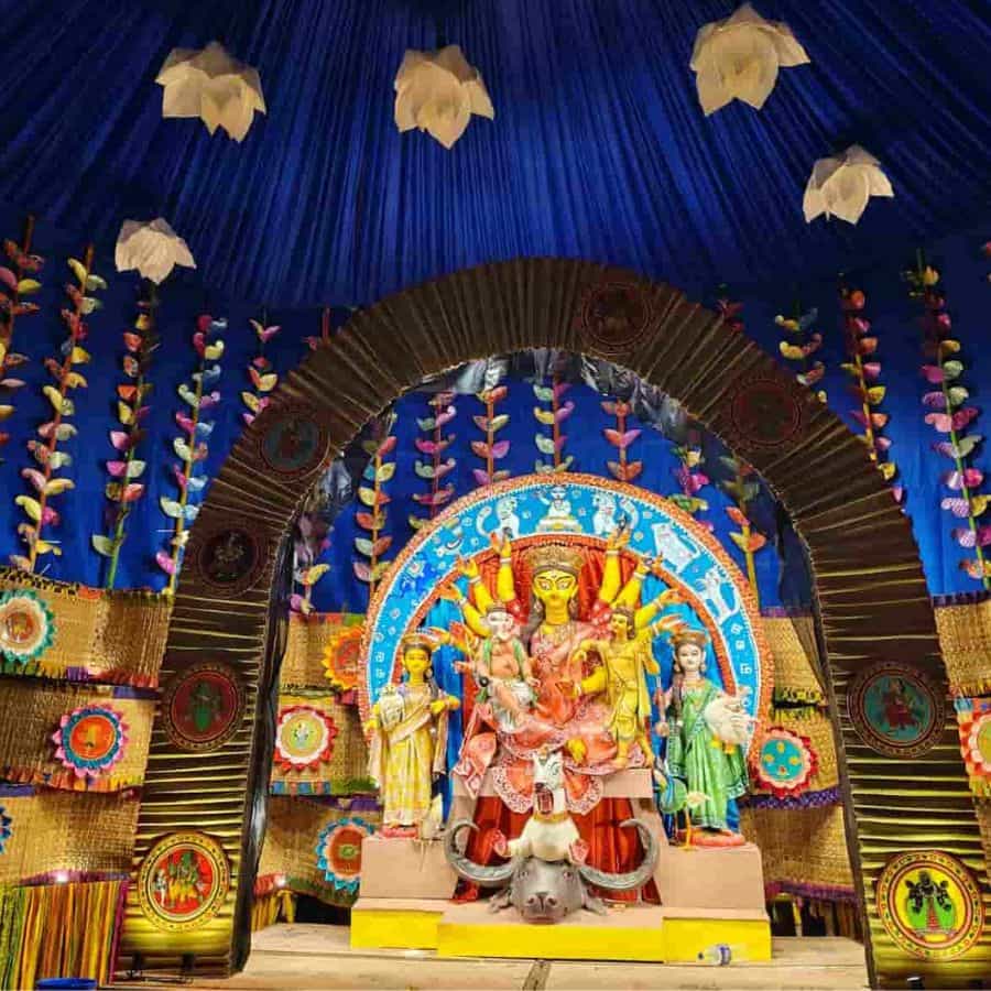 গুরুত্বপূর্ণ বিষয় হল, ফোম, থার্মোকল বা প্লাস্টিক নয়, সম্পূর্ণ প্যান্ডেলটি তৈরি হয়েছে পরিবেশবান্ধব উপকরণ দিয়ে। এই গ্রিন পুজোমণ্ডপ সৃজন করেছেন শিল্পী প্রীতম আচার্য। কৃষ্ণনগরের সাবেক সাজে দেবী প্রতিমা গড়েছেন প্রতিমা শিল্পী শ্রী সুরজিৎ ঘোষ।