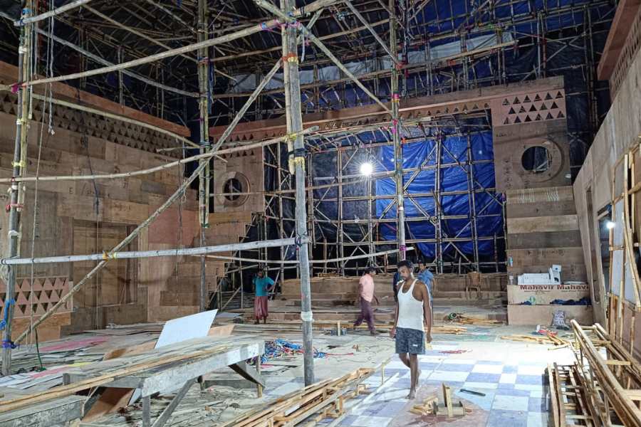 এই বছরের থিম-শিল্পী গোবিন্দ গিরি ঢেলে সাজাচ্ছেন মণ্ডপকে। সোমনাথ শী জানালেন, ‘সময় বা ঘড়ি নিয়ে এই রকম কাজ আগে কোনও থিমে হয়নি। তাই আমরা এই রকম প্রয়াসকে নিয়ে সবাই খুব উৎসাহিত,’ বললেন সোমনাথবাবু।