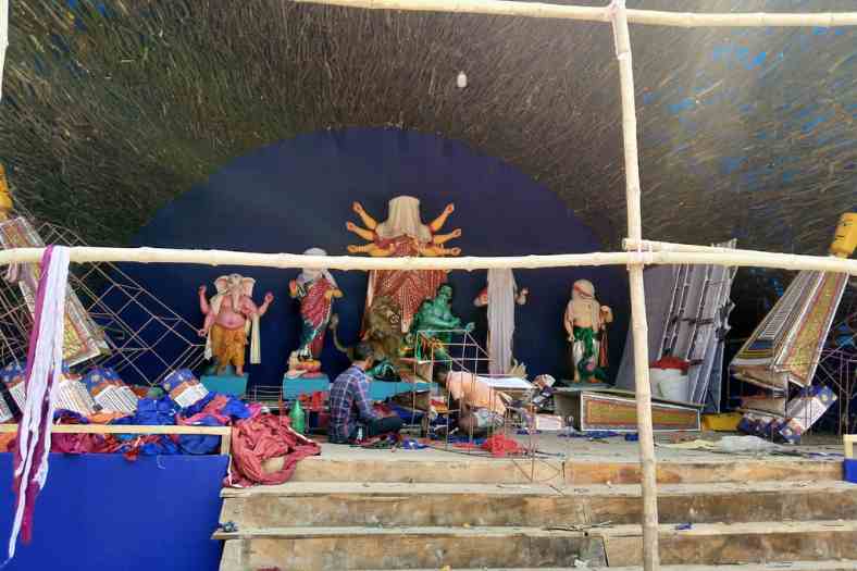ওলাবিবিতলা সার্বজনীন দুর্গোৎসব সমিতির প্রচার সচিব অখিল ভট্টাচার্য আনন্দবাজার অনলাইন-কে বলছেন, তাঁদের পুজো মন্ডপে পরস্পরের অপরিচিত দর্শনার্থীরাও একাত্মবোধ অনুভব করতে পারেন, এমন ভাবেই চারপাশের আবহ গড়ে তোলা হচ্ছে। প্রতিমা শিল্পী সনাতন পাল বাংলার ঐতিহ্যশালী একচালা, ডাকের সাজে মা-কে সাজিয়ে তুললেও সেটা এঁদের এ বছরের থিমের সঙ্গে চমৎকার মানিয়ে গিয়েছে।