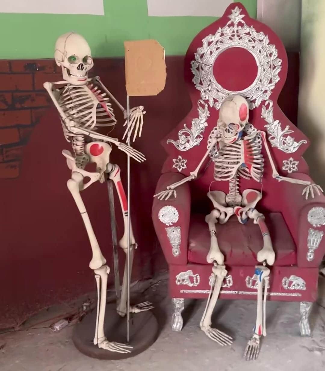 মহারাজা কৃষ্ণচন্দ্রের ঐতিহ্যের কৃষ্ণনগরে এ কেমন নতুন লীলাখেলা! ভিতরে ঢুকলে গা ছমছমে অনুভূতি। রাজবাড়ির গাম্ভীর্য নয়, এখানে মিশেছে এক ভুতুড়ে আমেজ। চার দিকে ছড়িয়ে-ছিটিয়ে রয়েছে কঙ্কালের মডেল। এক লহমায় মনে হবে যেন কোনও গল্পের পাতা থেকে উঠে আসা রাজবাড়ির অলিন্দ, যেখানে প্রাণের স্পন্দন থেমে গিয়ে শুধুই রহস্যের আনাগোনা। উৎসবের হাসিখুশি আবহের মাঝে এমন হাড়হিম করা অভিজ্ঞতা তৈরি হয়েছে রায়পাড়া মালিপাড়ায়। রসবোধ আর বিনোদনের এই অনবদ্য বুনন দেখতে পেলে মন ভরে উঠবে বৈকি! তবে সাবধান! ভূতের বাড়ি বলে কথা! একা ঢুকবেন না যেন!