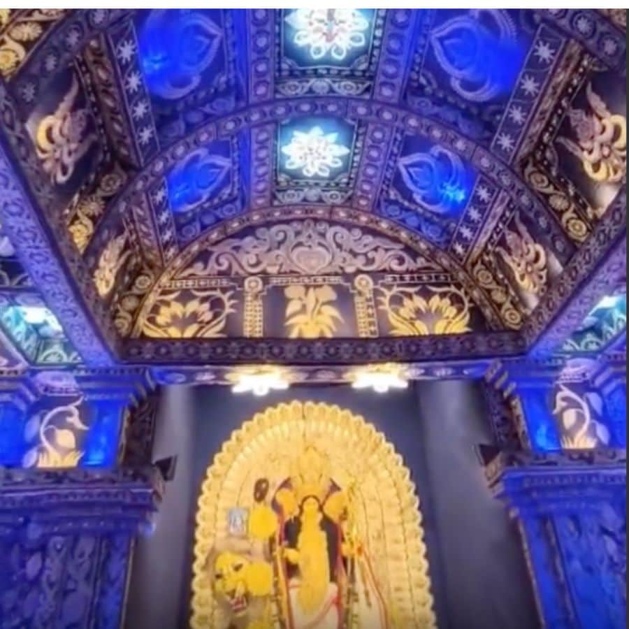 লিলুয়া রেল কলোনির এই ক্লাবের পুজো মানেই নতুন চমক। আর এ বছর তাদের মণ্ডপসজ্জার থিম— মায়ানমারের ঐতিহাসিক হসিনবিউমে প্যাগোডা। শুভ্র এই মন্দিরের ভেতরের কারুকার্য গড়তে শিল্পীরা ব্যবহার করেছেন একে বারে সাদামাটা জিনিস, পাঠকাঠি এবং আইসক্রিমের কাঠি! ভাবা যায়, এই সামান্য জিনিস দিয়েই তৈরি হয়েছে এক বিশাল স্থাপত্য! শিল্প আর আবেগের এমন বুনন সত্যিই দেখার মতো।