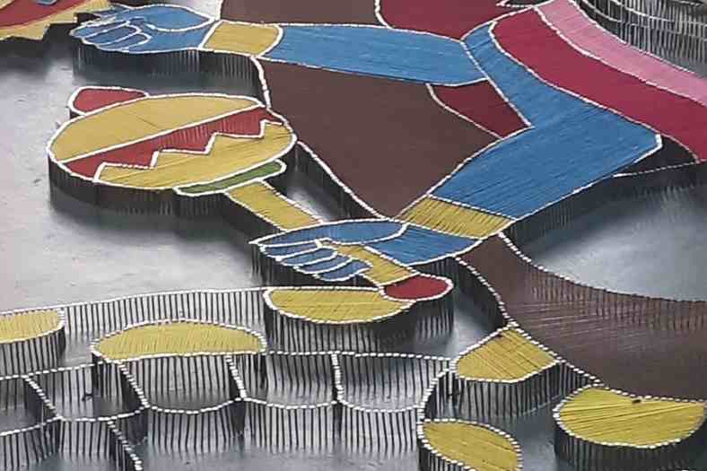 মণ্ডপসজ্জায় ব্যবহার হয়েছে দড়ি থেকে সুতো নানা রকমের বাঁধুনি, যা দিয়ে তৈরি করা হয়েছে মাকড়সার জালের ন্যায়ে এক বিশাল জাল। মধ্যিখানে রয়েছে দেবী মূর্তি। এই থিম তৈরি করেছেন সোমনাথ মুখোপাধ্যায় আর প্রতিমা গড়েছেন পরিমল পাল।