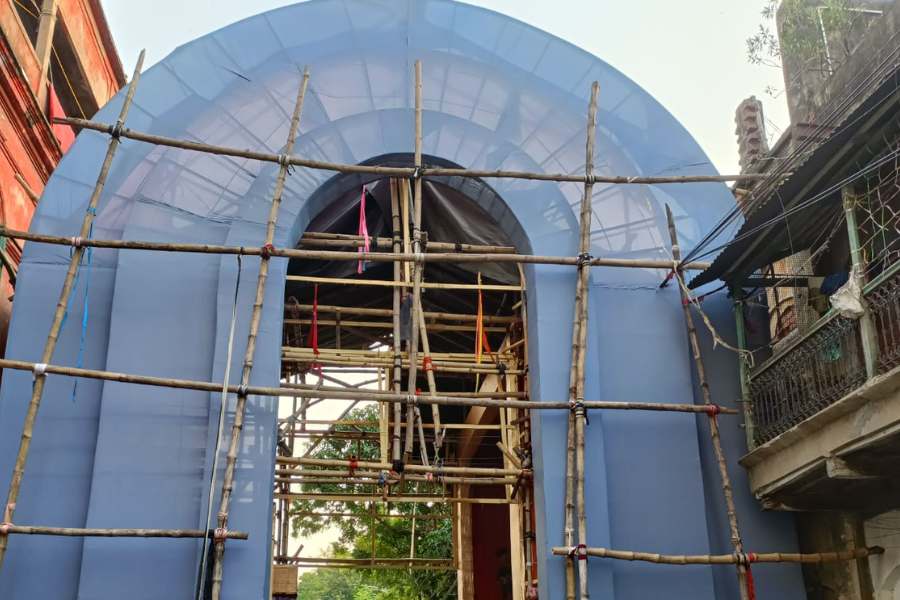 মনমোহন বোস স্ট্রিট সার্বজনীন দুর্গোৎসব সমিতির এই পুজোয় মণ্ডপ সেজে উঠছে শিব ও পার্বতীর সাজে। এ বছরই এদের সাবেকি পুজোর শেষ বছর।