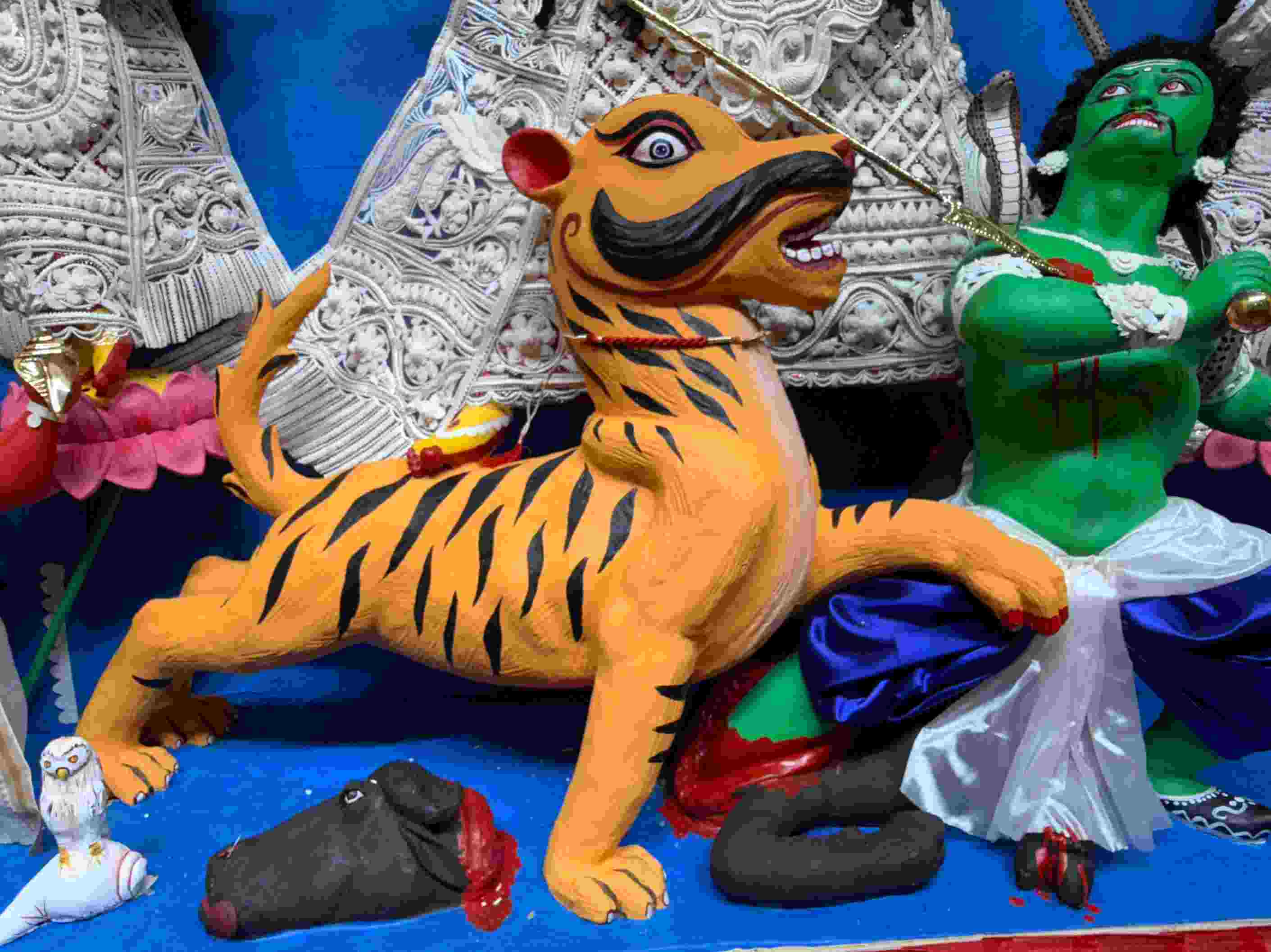গৃহকর্তা জয়দীপ কুণ্ডু নিজে এক সংস্থার সাথে যুক্ত, যারা বন্যপ্রাণ সংরক্ষণ ও বিশেষত ব্যাঘ্র সংরক্ষণ নিয়ে কাজ করে। শুধু জয়দীপ নন, তাঁর স্ত্রী-ও যুক্ত এই কর্মকাণ্ডে। বন্যপ্রাণের প্রতি তাঁদের এই টান বোঝা যায় কুণ্ডু বাড়ির পুজোয় গেলেই। দুর্গা এখানে সিংহবাহিনী নন, ব্যাঘ্রবাহিনী।