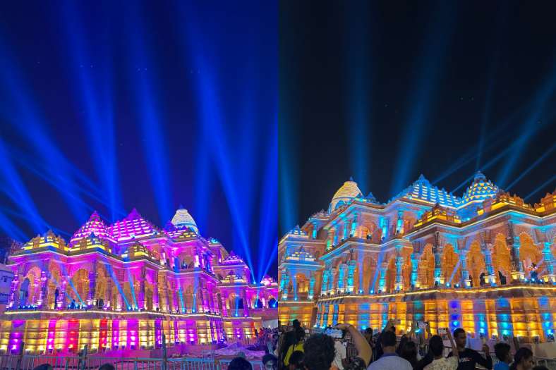 শুধু মণ্ডপ সজ্জা নয়, সঙ্গে রয়েছে আলোক সজ্জাও। দুর্দান্ত এবং উন্নতমানের আলোতে এই মণ্ডপের রূপ যেন আরও ধরতে চেয়েছে রামমন্দিরের আবহাওয়াকে।