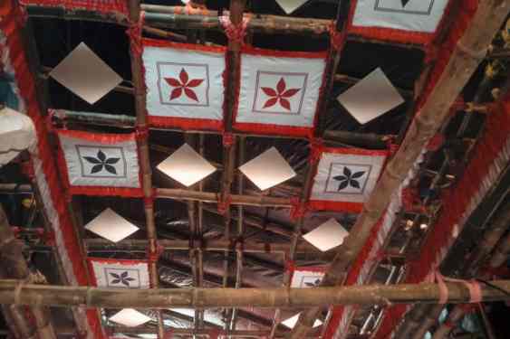 এইবার ৬৩ বছরের পুজো তাঁদের। দেবীর অষ্টাদশভূজার রূপ দর্শকদের সামনে তুলে ধরছেন তাঁরা। দেবীর বিভিন্ন রূপ হাতে এঁকে এ ছাড়াও চালচিত্রের মাধ্যমে পুরো পুজো মণ্ডপ সাজিয়ে তোলা হচ্ছে। মণ্ডপ তৈরির ক্ষেত্রে প্রধানত তিনটি রঙকে প্রাধান্য দিচ্ছেন কর্মকর্তারা। সাদা, নীল ও লাল এই তিনটি রঙে সাজানো হবে মণ্ডপকে।