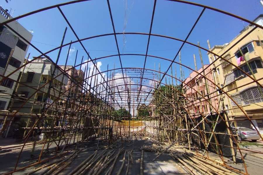 এ বছরের থিম ‘আমি কে’। নামের মতোই ভাবনা কিন্তু বেশ নতুন রকম। সদস্যদের দাবি, দর্শনার্থীরা নিজেদেরকে নতুন করে খুঁজে পাবেন এই মণ্ডপে।