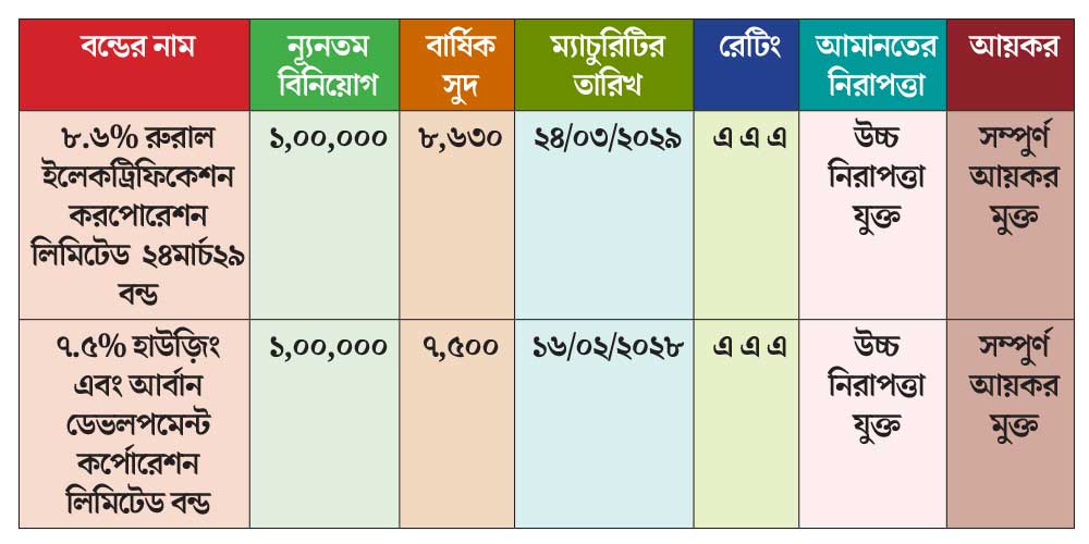এ ছাড়াও আরও কয়েকটি সরকারি বন্ড এখন বাজারে পাওয়া যাচ্ছে যার থেকে আপনার লাভ খতিয়ে দেখতে পারেন।