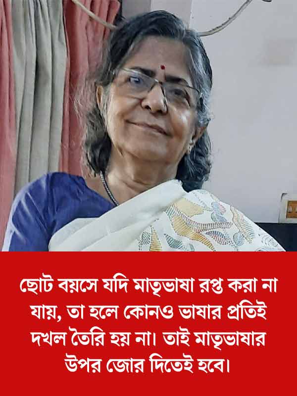 প্রযুক্তি নির্ভরতার যুগে ছোটদের পড়াশোনা কেমন হওয়া প্রয়োজন, বেড়ে ওঠার সহজপাঠে কোন বিষয়গুলি নজর না দিলেই নয়—সে সব মিলিয়ে নিজের কথা জানালেন গোখলে মেমোরিয়াল গার্লস স্কুলের বাংলার প্রাক্তন শিক্ষিকা সুদেষ্ণা মৈত্র।