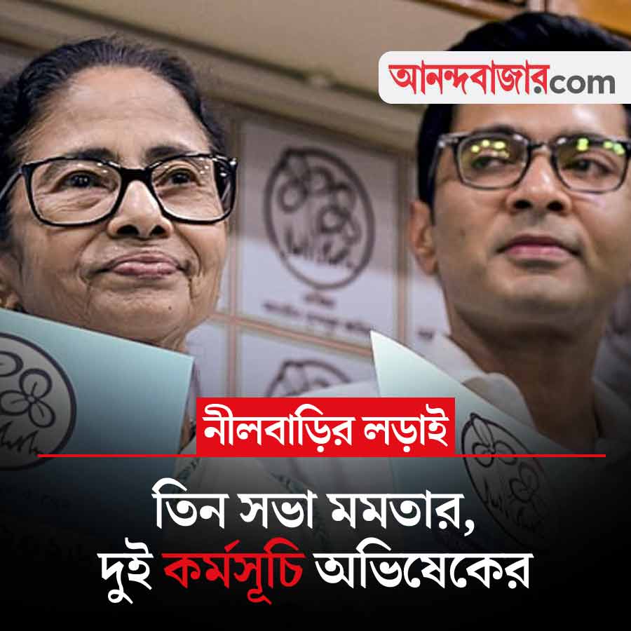 সোমবার জোরদার প্রচারে নামছে তৃণমূল কংগ্রেস। মুখ্যমন্ত্রী মমতা বন্দ্যোপাধ্যায় এক দিনে তিনটি গুরুত্বপূর্ণ জনসভা করবেন। দলীয় সূত্রে জানা গিয়েছে, তাঁর প্রথম সভা পাঁশকুড়া পশ্চিম বিধানসভা কেন্দ্রে। এর পর ডেবরা এবং শেষ সভা হবে বিষ্ণুপুর বিধানসভা কেন্দ্রে। অন্য দিকে, তৃণমূলের সর্বভারতীয় সাধারণ সম্পাদক অভিষেক বন্দ্যোপাধ্যায়েরও সোমবার দু’টি কর্মসূচি রয়েছে। তিনি প্রথমে পুরুলিয়া জেলার বাঘমুন্ডি বিধানসভা কেন্দ্রে একটি জনসভা করবেন। এর পর পূর্ব মেদিনীপুরের দক্ষিণ কাঁথি বিধানসভায় একটি অভ্যন্তরীণ দলীয় বৈঠকে যোগ দেবেন। এই কেন্দ্রটি বিজেপি নেতা শুভেন্দু অধিকারীর শক্ত ঘাঁটি হিসেবে পরিচিত। ফলে ওই এলাকায় সংগঠন মজবুত করতেই অভিষেকের এই বৈঠক গুরুত্বপূর্ণ বলে মনে করছে রাজনৈতিক মহল। এই খবরে নজর থাকবে।