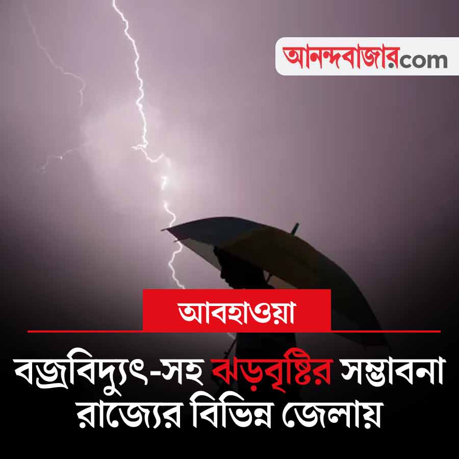 সোমবার দক্ষিণবঙ্গের আট জেলায় বৃষ্টির পূর্বভাস রয়েছে। হালকা থেকে মাঝারি বৃষ্টি হতে পারে ঝাড়গ্রাম, পুরুলিয়া, বাঁকুড়া, দুই বর্ধমান, বীরভূম, মুর্শিদাবাদ এবং নদিয়ায়। সোমবার দার্জিলিং, জলপাইগুড়ি, কালিম্পং, কোচবিহার এবং আলিপুরদুয়ারে বজ্রবিদ্যুৎ-সহ হালকা থেকে মাঝারি বৃষ্টির পূর্বাভাস রয়েছে। ঘণ্টায় ৩০-৪০ কিলোমিটার বেগে বইতে পারে দমকা হাওয়াও।