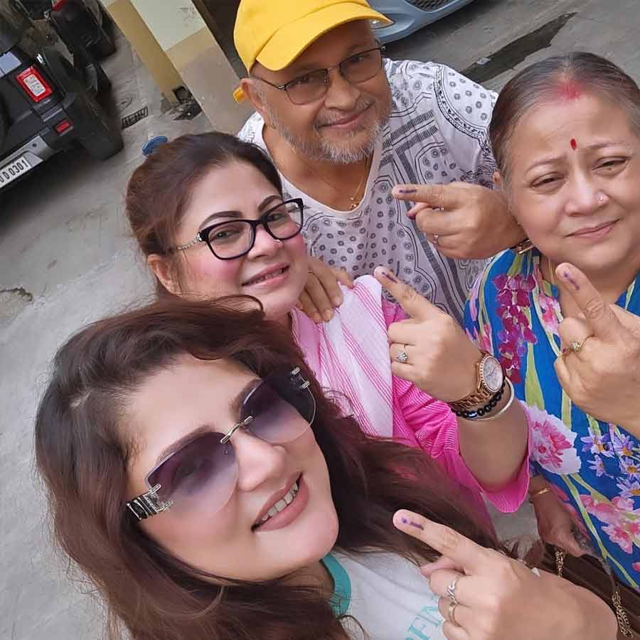 বাইপাস সংলগ্ন আবাসনে থাকেন শ্রাবন্তী চট্টোপাধ্যায়, রচনা বন্দ্যোপাধ্যায়েরা। কিন্তু শ্রাবন্তীর ভোট এখনও তাঁর পুরনো পাড়ায়। বেহালায় মা-বাবা, দিদির সঙ্গে ভোট দিয়ে এলেন নায়িকা। অন্য দিকে রচনা সকাল সাতটায় মিটিয়ে এলেন নিজের ভোটপর্ব।
