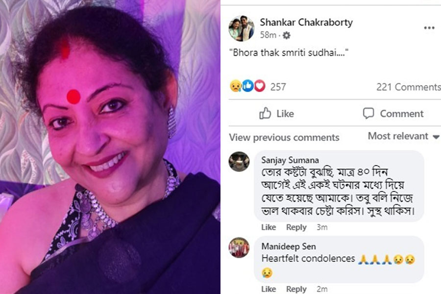 দু’দিন ধরে অসুস্থ হয়ে হাসপাতালে ভর্তি ছিলেন শঙ্কর-পত্নী সোনালি চক্রবর্তী। সোমবার ভোর ৪টেয় শেষ নিশ্বাস ত্যাগ করেন ছোট পর্দার জনপ্রিয় অভিনেত্রী। আনন্দবাজার অনলাইনের তরফে শঙ্করের সঙ্গে যোগাযোগ করায় তিনি জানালেন, দীর্ঘ দিন ধরে লিভারের জটিলতায় ভুগছিলেন সোনালি। সেই পুরনো অসুস্থতাই মাথাচাড়া দিয়ে উঠতে এ বার হাসপাতালে ভর্তি করা হয়েছিল তাঁকে। তবে টানা দু’দিন লড়াইয়ের পর মৃত্যুর কাছে হেরে যান তিনি। স্ত্রীর মৃত্যুসংবাদ সোমবার সকালে ফেসবুকে জানান শঙ্কর। মৃত্যুর সময়ে তাঁর বয়স হয়েছিল ৫৯ বছর।