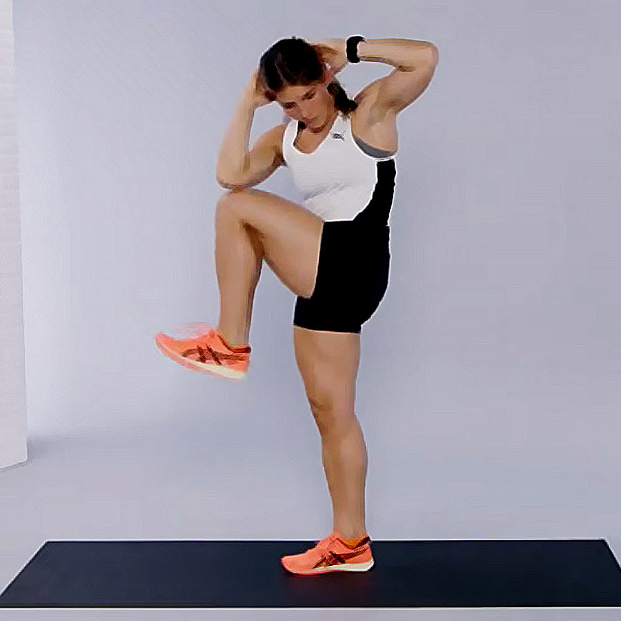 ২. হাঁটু আর কনুইয়ের ব্যায়াম (স্ট্যান্ডিং ক্রাঞ্চ)