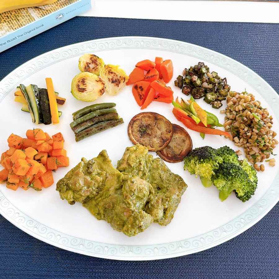 হৃতিকের খাবারের থালাটি দেখার মতো। সেখানে রয়েছে সবুজ রঙের মশলাদার গ্রেভি ছড়ানো মুরগির মাংসের কোনও একটি পদ। পাশে সাজানো রয়েছে বিভিন্ন ধরনের সব্জি— যেমন গাজর, টম্যাটো, ব্রকোলি, বেল পিপার, ক্যাপসিকাম, বিনস, জুকিনি, ব্রাসেলস স্প্রাউট, কুমড়ো এবং ঢেঁড়স ভাজা। সবই অল্প অল্প করে থালার মাঝামাঝি দু’টুকরো গোল গোল আলু ভাজাও রয়েছে। তবে সে দু’টি সাধারণ আলু নাকি রাঙা আলু তা চট করে বোঝার উপায় নেই। এ ছা়ড়া রয়েছে সামান্য মশলা আর তেলে নাড়াচাড়া করা সেদ্ধ মুগ ডালও। শেষ পাতে একটা কলা এবং বিটের রায়তা খেতেও দেখা যাচ্ছে অভিনেতাকে।