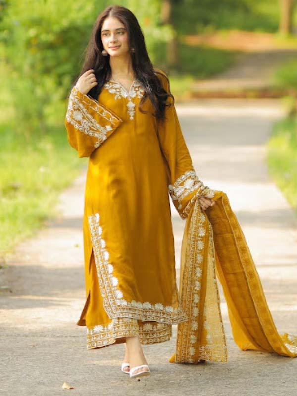 বাঙালির পুজোর সাজে শাড়ি নেই! এমন কল্পনা করা সহজ নয়। তবে মাঝেমাঝে ছক ভাঙলেও ক্ষতি নেই। পুজোর এই চারটি দিনের জন্য চাতক পাখির মতো অপেক্ষায় থাকে বাঙালি। উৎসবে খাওয়াদাওয়া, আনন্দও যেমন বাঁধনছাড়া হয়, তেমনি সাজগোজও হয় মন খুলে। সাজ নিয়ে চলে পরীক্ষানিরীক্ষা। অনেকেই আছেন যাঁরা শাড়ি পরতে ভালবাসেন, কিন্তু শাড়ি সামলানোর ঝক্কি পোহাতে চান না। তা হলে উপায়? শাড়িরও কিন্তু কিছু রকমফের আছে। সে ক্ষেত্রে কম ঝক্কির রেডিমেড শাড়ি পরা যেতে পারেন বলে জানাচ্ছেন শহরের অন্য এক পোশাকশিল্পী অনুপম চট্টোপাধ্যায়। জিন্স দিয়েও শাড়ি পরার কথা মনে করিয়ে দিলেন তিনি। আর কোনও বিকল্প? অনুপমের কথায়, ‘‘স্কার্টের সঙ্গে মানানসই টপ পরে ওড়না দিয়ে ড্রেপ করে নিলেই একটা পরিপূর্ণ সাজ হয়ে যাবে।’’ এ ছাড়া সালোয়ার-কামিজ় তো রয়েছেই। আবার ‘কলঙ্ক’ সিনেমায় আলিয়া ভট্টের মতো গোড়ালি ঝুল আনারকলি পরলেও যে সকলের নজরে থাকা যাবে, সেটা আর বলার অপেক্ষা রাখে না। তবে লাল-সাদা ছাড়া আর কোন রং থাকতে পারেন অষ্টমীর সাজে? অনুপমের পরামর্শ, প্যাস্টেল ঘেঁষা কিছু রং, যেমন অলিভ সবুজ, হালকা হলুদ ভাল লাগবে। ছেলেরা কুর্তা-পাজামার বদলে ডেনিমের সঙ্গে শর্ট কুর্তা পরতে পারেন। পালাজো দিয়ে কোমরঝুল কুর্তাও পরলে অন্য রকম লাগবে বলে জানালেন পোশাকশিল্পী।