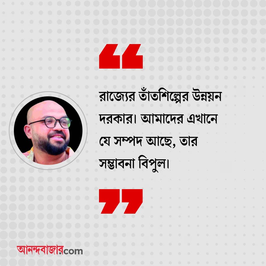 অভিষেক: রাজ্যের তাঁতশিল্পের উন্নয়ন দরকার। আমাদের এখানে যে সম্পদ আছে, তার সম্ভাবনা বিপুল। বর্তমান সরকার করেছে। আরও অনেক কিছু করার সুযোগ আছে।