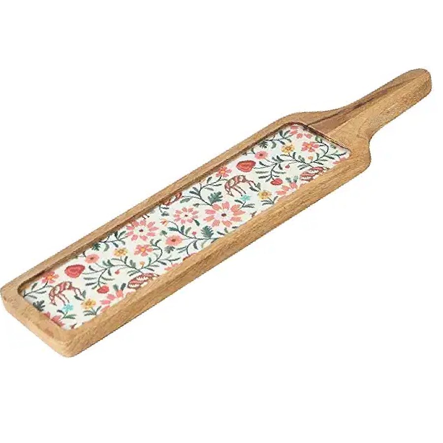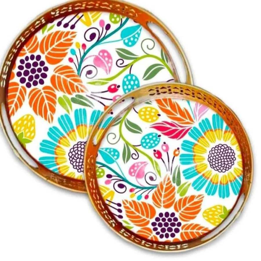 ফুলেল ছাপওয়ালা কাঠের গোল ট্রে