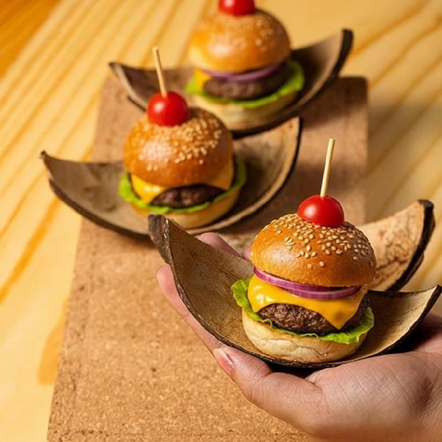 শখ-শৌখিনতা থাকলে নারকেল খোলের ট্রে কেনার কথাও ভাবতে পারেন। নারকেলের খোল কেটে, পলিশ করে এই ধরনের ট্রে বানানো হয়। বার্গার, মিনি শিঙাড়া, কচুরি, চাট এমন ধরনের খাবার পরিবেশনের জন্য এটি ভাল। এতে বেশি খাবার রাখা যাবে না বটে, তবে দেখতে জিনিসটি ভীষণ আকর্ষক।