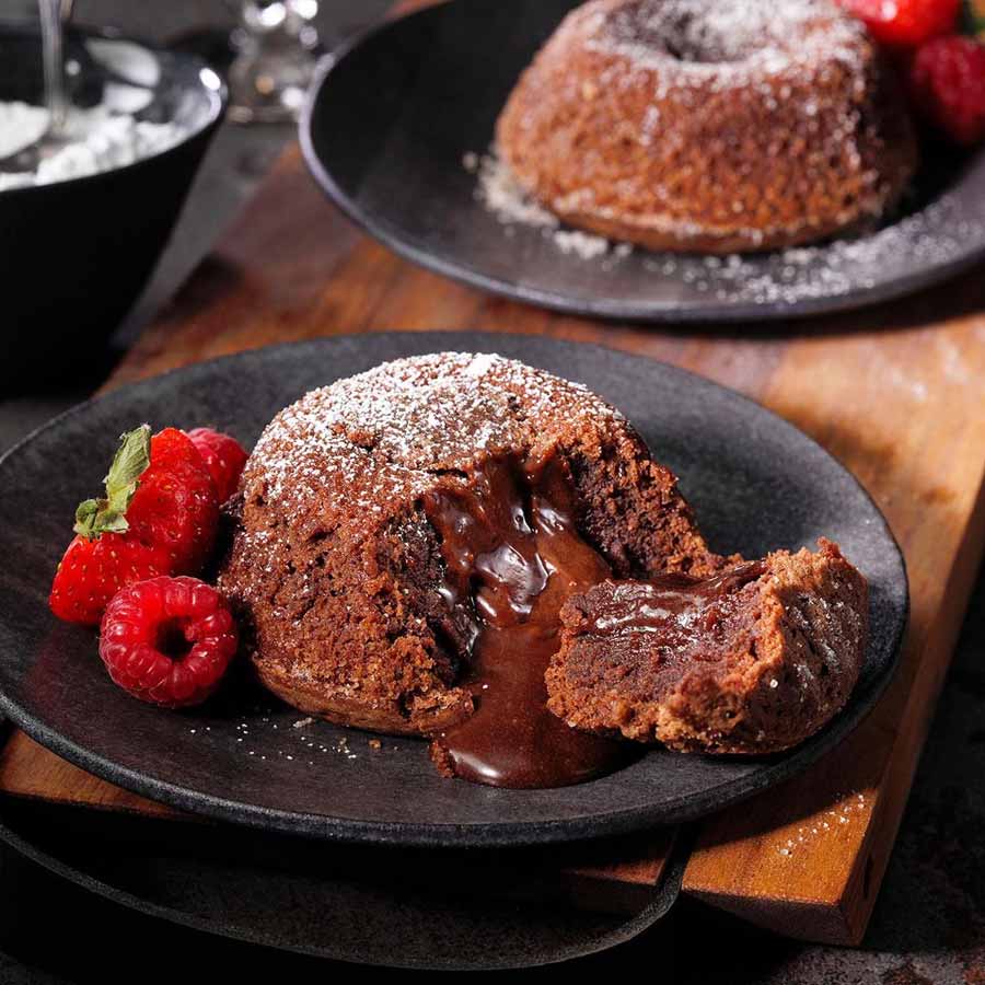 একটি চালুনিতে ময়দা, কোকো পাউডার, গুঁড়ো চিনি, বেকিং পাউডার, বেকিং সোডা ভাল করে ঝেড়ে নিন একটি বড় পাত্রে। এ বার সেই মিশ্রণে গলানো মাখন, ভ্যানিলা এসেন্স, দুধ দিয়ে খুব ভাল করে ফেটিয়ে নিন। এ বার ছোট বেকিং মোল্ডে মাখন মাখিয়ে কেকের মিশ্রণটি ঢেলে দিন। এ বার অভেন প্রিহিট করে ১৮০ ডিগ্রি সেন্টিগ্রেডে ১৫ মিনিট বেক করুন। পাওয়ার বন্ধ করে আরও দু’মিনিট রাখুন। এ বার কেক খুব আসতে বার করে নিয়ে মাঝ বরাবর ছুরি দিয়ে চিরে দিন। ভিতর থেকে বেরিয়ে আসবে গলানো ডার্ক চকোলেট। এ ভাবেই গরম গরম পরিবেশন করুন চকো লাভা কেক। সঙ্গে ঠান্ডা ভ্যানিলা আইসক্রিম আর চকোলেট সস্ থাকলেও মন্দ হয় না।