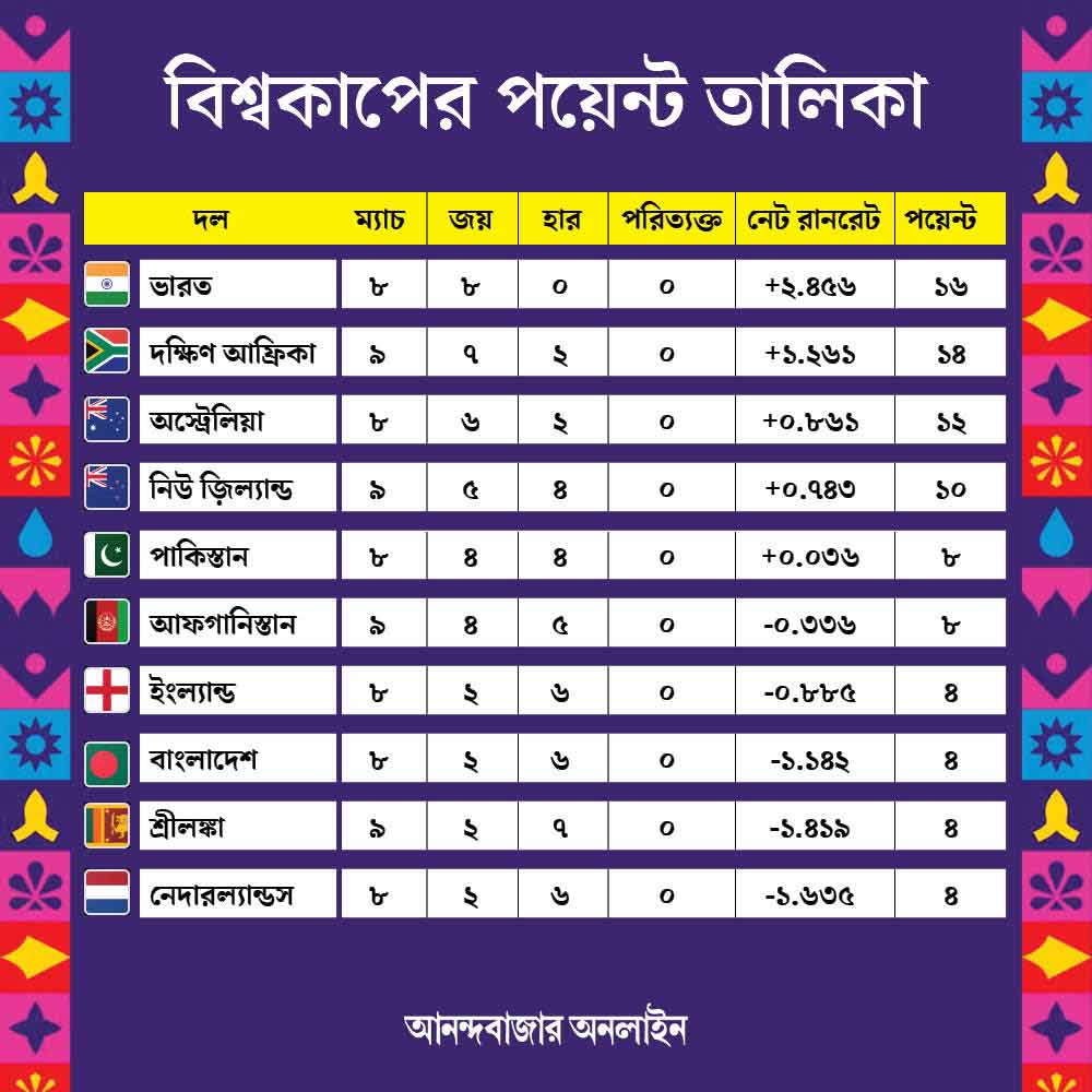 এ বারের বিশ্বকাপে তিন বার রান তাড়া করতে হয়েছে দক্ষিণ আফ্রিকাকে। প্রথম বার নেদারল্যান্ডসের বিরুদ্ধে অবিশ্বাস্য ভাবে হেরে গিয়েছিল তারা। প্রতিযোগিতার সেটা অন্যতম সেরা অঘটন। এর পর পাকিস্তানের বিরুদ্ধে শেষ উইকেটে খোঁড়াতে খোঁড়াতে কোনও মতে জিতেছিল। কেশব মহারাজ নায়ক হয়ে গিয়েছিলেন শেষ পর্যন্ত থেকে দলকে জিতিয়ে। শুক্রবার বিশ্বকাপের আর এক অঘটনকারী আফগানিস্তানের বিরুদ্ধেও দক্ষিণ আফ্রিকা সহজে সুবিধা করতে পারেনি। প্রথম সারির একাধিক ব্যাটার রান করতে পারেননি।
