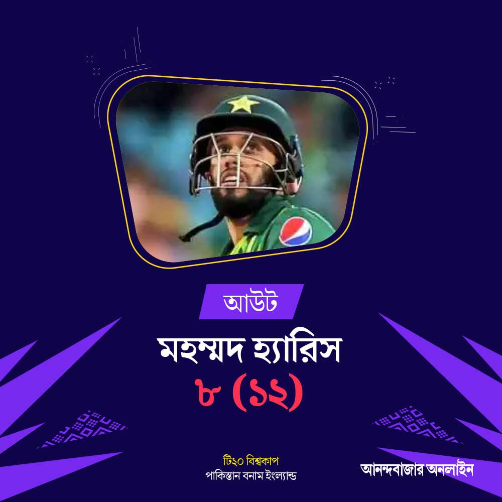 আদিল রশিদের বলে ৮ রান করে আউট হ্যারিস।