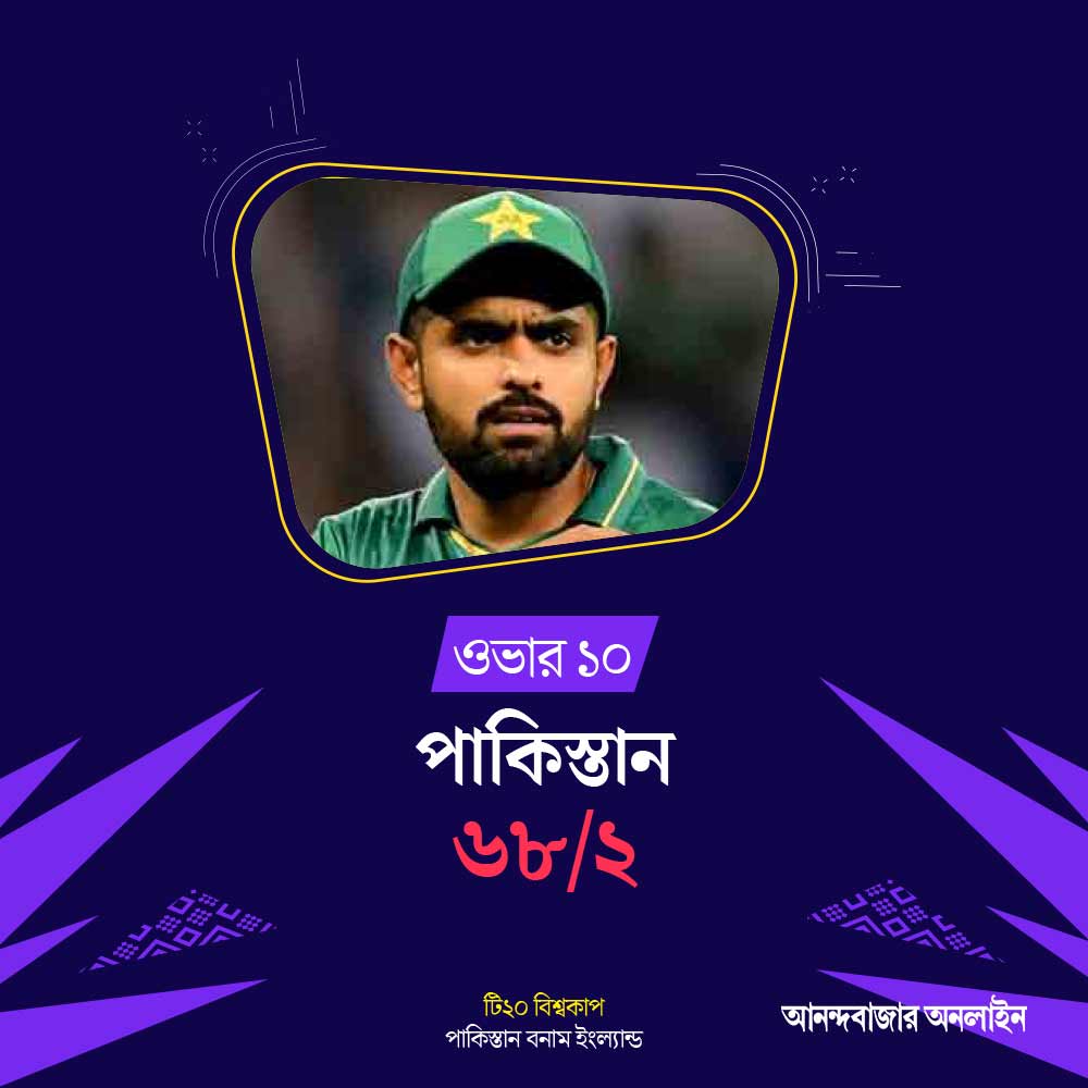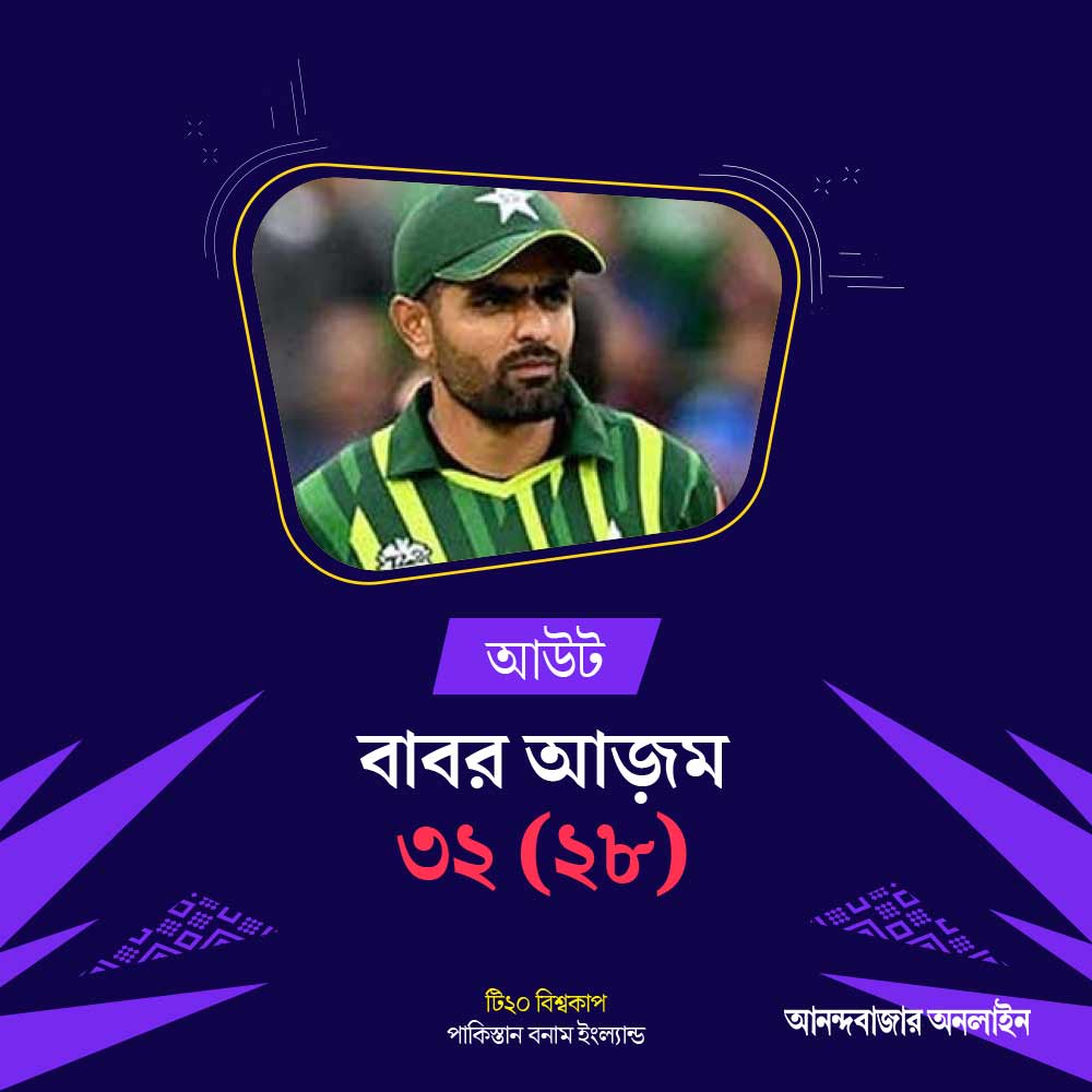 বাবর ১৬ ও হ্যারিস ৪ রান করে ব্যাট করছেন।