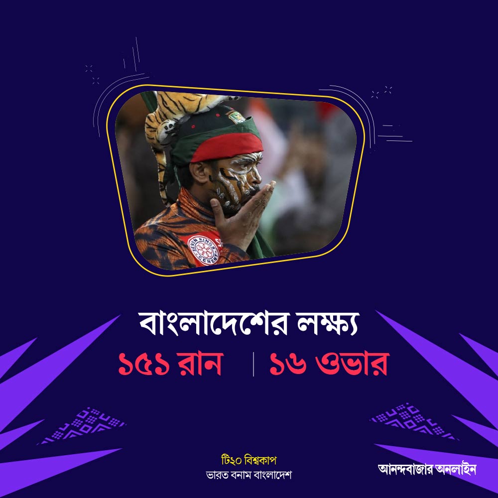 বৃষ্টির জন্য ওভার কমে গেল ভারত বনাম বাংলাদেশ ম্যাচের। ১৬ ওভারে বাংলাদেশের লক্ষ্য ১৫১ রান। খেলা শুরু হলে বাংলাদেশকে ৯ ওভারে ৮৫ রান করতে হবে।