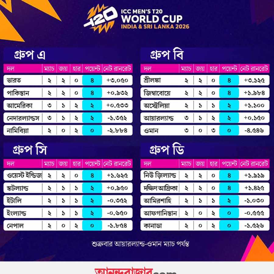 রবিবার কোনও ভাবেই ৫ ওভার করেও খেলা সম্ভব না হলে ম্যাচ বাতিল হিসাবে ধরা হবে। সে ক্ষেত্রে ভারত এবং পাকিস্তান দু’দলই ১ পয়েন্ট করে পাবে। তাতে উভয় দলের পয়েন্ট হবে ৩ ম্যাচে ৫। দু’দলই সুপার এইটে চলে যাবে। কারণ গ্রুপের বাকি তিন দল আমেরিকা, নামিবিয়া এবং নেদারল্যান্ডসের পক্ষে ৫ পয়েন্টে পৌঁছোনো সম্ভব নয়।