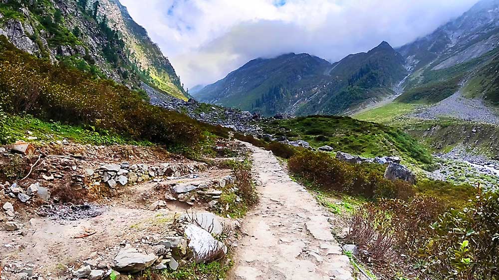 সকালে উঠে চা আর আলুর পরোটা দিয়ে ব্রেকফাস্ট সেরে বেরিয়ে পড়লাম গৌরীকুণ্ডের উদ্দেশে। দূরত্ব ৬ কিলোমিটার। যত উপরে উঠছি, সৌন্দর্যের বহর যেন বাড়ছে। সাদা মেঘে মাঝেমাঝে ঢেকে যাচ্ছে পাহাড়চুড়ো। দূরে পাহাড়ের ঢালে ভেড়ার পাল চড়ে বেড়াচ্ছে। পাহাড়ের রং এক-এক জায়গায় এক-এক রকম। কোথাও সবুজ, কোথাও নীল, কোথাও বা ধূসর। কোথাও আবার পাহাড়ের চুড়োয় একচিলতে বরফ লেগে রয়েছে। তার মাঝে খরস্রোতা নদী কখনও দৃশ্যমান, কখনও অদৃশ্য। যেন আমাদের সঙ্গে লুকোচুরি খেলছে। এ ভাবে প্রায় ৪ কিলোমিটার পথ চলার পরে পৌঁছলাম সুন্দরাশি। ঘড়িতে তখন বাজে আড়াইটে। আবহাওয়ার কিছুটা পরিবর্তন হয়ে হালকা বৃষ্টি শুরু হয়েছে। তবে সে বৃষ্টি বেশিক্ষণ স্থায়ী হল না। আমাদের শরীর ক্লান্ত আর গতি ধীর হয়ে পড়ল। তার মধ্যেও এই উন্মুক্ত পাহাড়ি উপত্যকা, দূরে ভাসমান সাদা মেঘের সারি মনে চলনশক্তি জোগাচ্ছিল। উঁচু পাহাড় থেকে নীচে ফেলে আশা সেই নদীটি দেখে মনে হচ্ছিল, সবুজ কার্পেটের উপরে কেউ যেন সরু একটা ফিতে বিছিয়ে দিয়ে গিয়েছে।