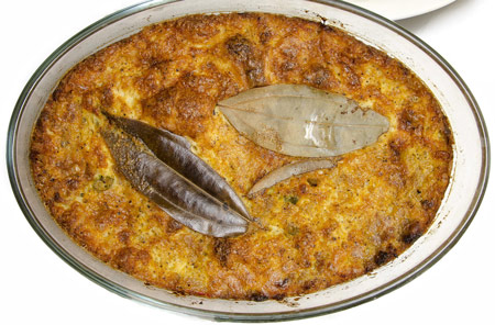 তার উপরে তিনটি তেজপাতা সাজিয়ে দিন। পাত্রটি ওভেনে ১৮০ ডিগ্রি সেলসিয়াস তাপমাত্রায় এ ২০-২৫ মিনিট রাখুন।