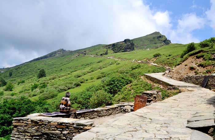 চন্দ্রশিলা যদি সামিট হয়, তবে তুঙ্গনাথ সামিট ক্যাম্প— যেখান থেকে প্রায় এক কিলোমিটার আগে অমর সিংহ রানার চায়ের দোকানে আমরা একটু আগেই এসে পৌঁছেছি। এ পথে চায়ের দোকানের মজা আলাদা। বিস্তৃত অঞ্চল জুড়ে দৃশ্যত একটাই মাত্র দোকান। আর পাহাড় ঘেরা মাঠের ধারে সে দোকানের যা লোকেশন, তাতে করে বেশ খারাপ করে বানানো চা খেতেও খুব একটা খারাপ লাগে না। পথ শুরু হওয়ার এক কিলোমিটার পরে অমলের চায়ের দোকান আর পৌঁছবার এক কিলোমিটার আগে অমরের চায়ের দোকান। মাঝখানে রাস্তা এক বার উঠতে উঠতে প্রায় আকাশে উঠে যাচ্ছিল।