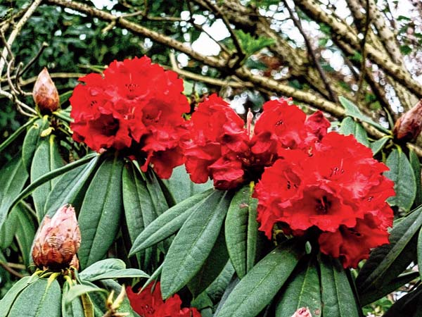 আবার ঝেঁপে বৃষ্টি এল। আবার শুরু হল উইন্ডস্ক্রিনে ওয়াইপারের ব্যস্ত যাতায়াত। নিত্যনতুন জলরঙে আঁকা ছবি তৈরি হচ্ছে বাসের রেয়ার মিররে। গাড়োয়াল হিমালয়ে মেঘ-পিয়নের আনাগোনা দেখতে দেখতে খানিকটা আনমনা হয়ে পড়েছিলাম। হঠাৎ অরিজিতের কথায় সম্বিৎ ফিরে পেলাম। ‘‘ওই দ্যাখ, লাল রডোডেনড্রনের কেমন জেল্লা!’’ যাকে গাড়োয়ালের লোকজন বলেন লালিগুরাস।