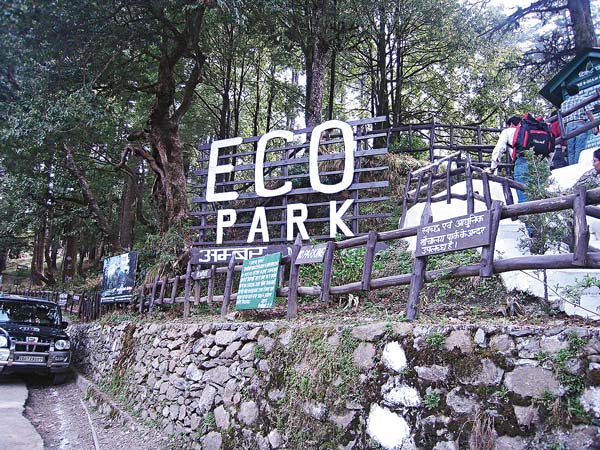বাস এসে থামল ধনৌলটি ইকো পার্কের সামনে। একরাশ মেঘ তাদের ভেজা পালক বুলিয়ে আমাদের অভ্যর্থনা জানাল। সঙ্গে আলতো পায়ে হাজির ঝিরঝিরে বৃষ্টি। এক অদ্ভূত অভিজ্ঞতা হচ্ছে। বৃষ্টির সঙ্গে, বৃষ্টি গায়ে মেখে বেড়ানো যে কী ভীষণ রোমান্টিক!