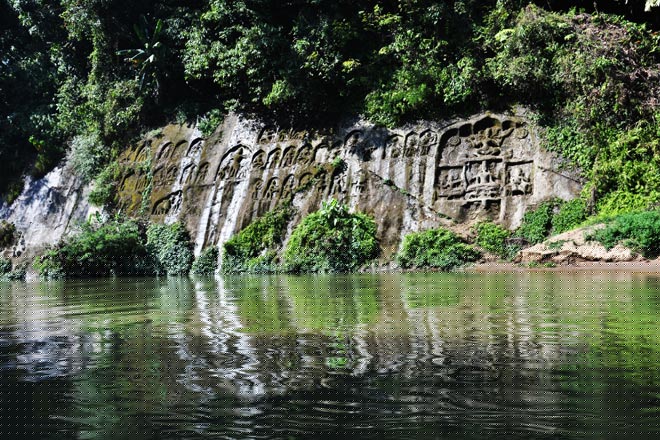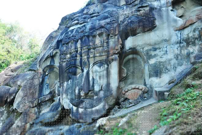 তবে এই জলযাত্রায় সব চেয়ে বেশি যেটা নজর কাড়বে তা হল দশভুজা দুর্গার মহিষাসুরমর্দিনী মূর্তিটি। প্রায় ২০ ফুট উঁচু বিশাল এই দেবীমূর্তিকে স্থানীয় উপজাতিরা অবশ্য ‘চক্রাকমা’ নামেই মানে। দেবীমূর্তির চুলের জায়গায় জড়ানো আছে অসংখ্য সাপ, আর পদতলে মহিষাসুরের পাশে রয়েছেন রুদ্রভৈরব। অসম্ভব সুন্দর, অনবদ্য এই প্রাচীন মূর্তিটি যে ভাবে খাড়া পাহাড়ের প্যানেলে খোদিত হয়েছে, সেই দৃশ্য পর্যটককে অভিভূত করবে।