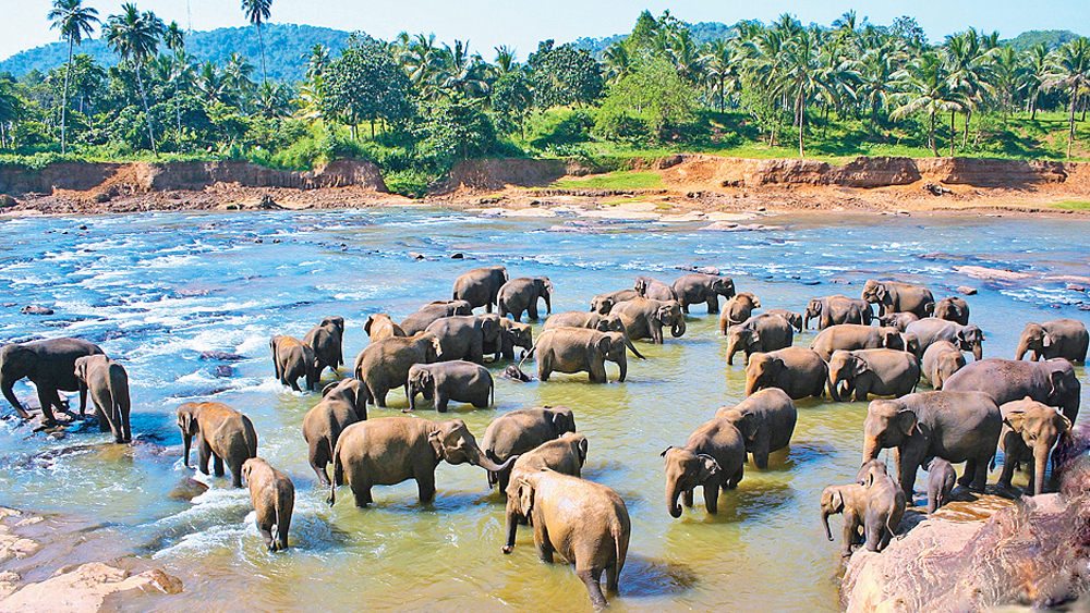 হাতিদের স্নান: পিনাওয়ালা এলিফ্যান্ট অরফ্যানেজে