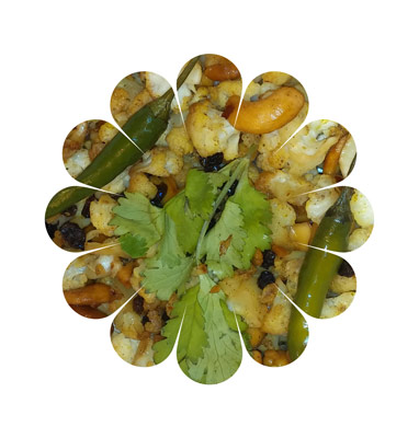 • ফুলকপি (মাঝারি) • কাজু (একমুঠো) • পেঁয়াজ (মাঝারি) • সাদা তেল • কিশমিশ (এক মুঠো)