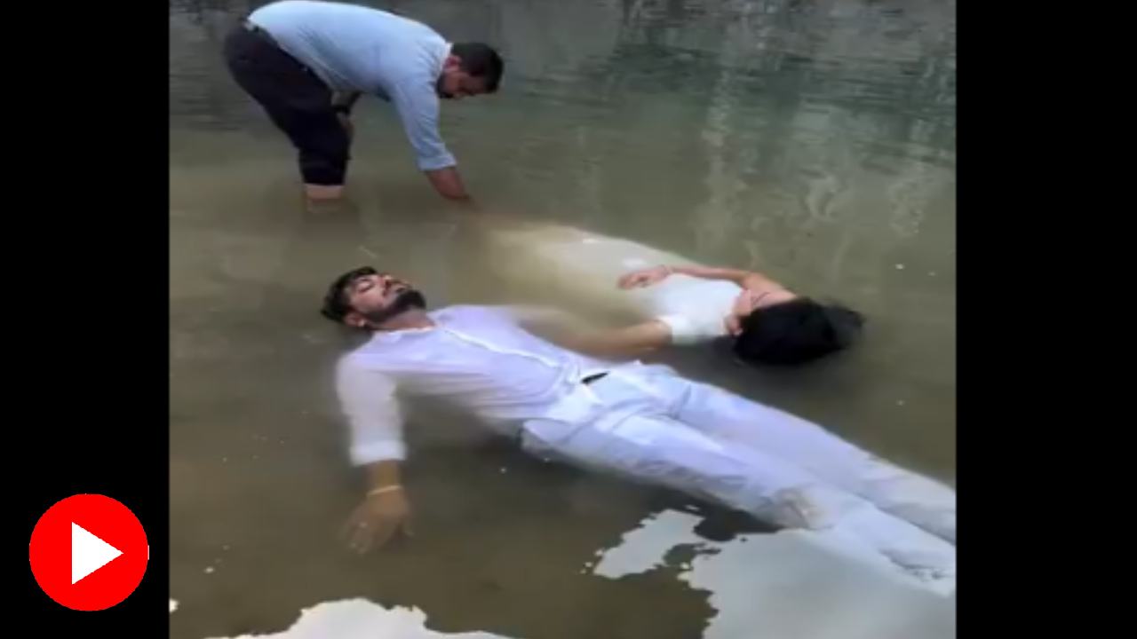 কাদাগোলা জল। আর সেই ঘোলাটে নোংরা জলের মধ্যেই সাদা পোশাকে ‘মৃতবৎ’ শুয়ে রয়েছেন তরুণ-তরুণী। তাঁদের সামনে ক্যামেরা নিয়ে দাঁড়িয়ে রয়েছেন কয়েক জন। দম্পতি চোখ বন্ধ করে কাদাজলের উপর স্থির ভাবে ভাসছেন, যেন তাঁরা এক জায়গায় আটকে গিয়েছেন। এমনই একটি অদ্ভুত ভিডিয়ো ছড়িয়ে পড়তেই জল্পনা শুরু হয়েছে সমাজমাধ্যমে। ভাইরাল হয়েছে ভিডিয়োটি। যদিও সেই ভিডিয়োর সত্যতা যাচাই করেনি আনন্দবাজার ডট কম। ভিডিয়োটি কবে বা কোথায় ক্যামেরাবন্দি করা হয়েছে সেই তথ্য পাওয়া যায়নি।