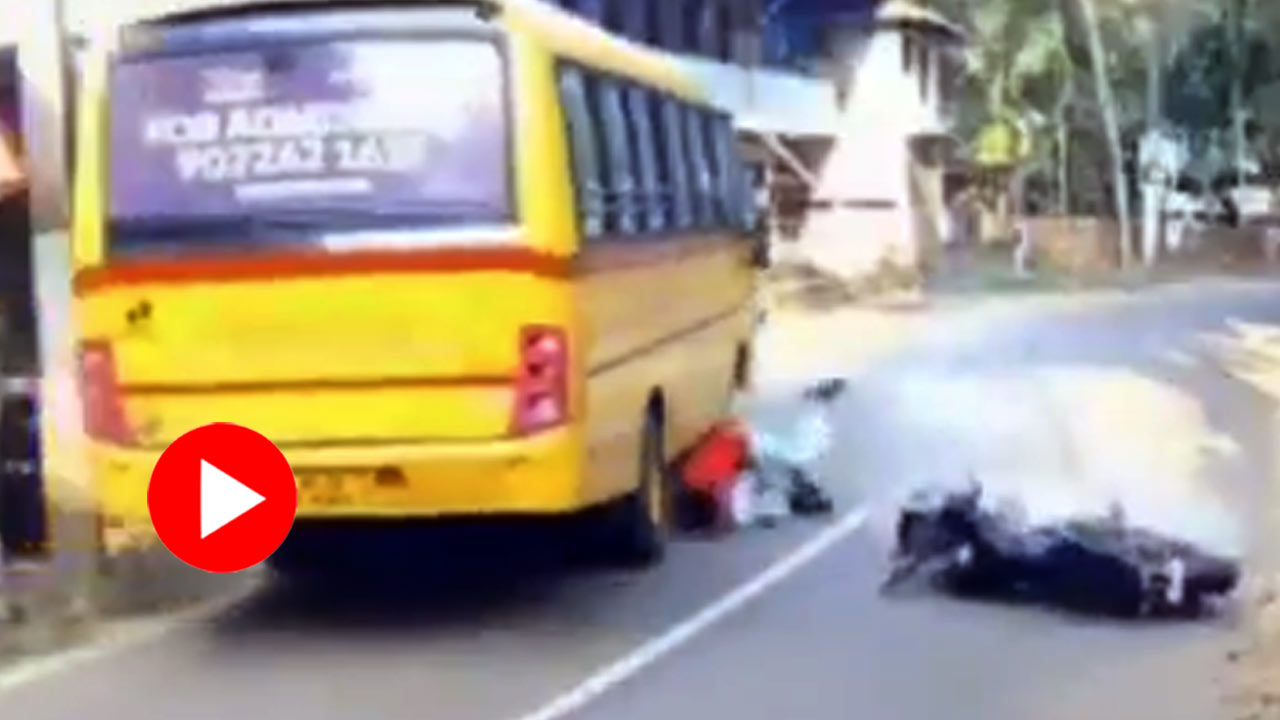‘ট্রু স্টোরি’ নামের অ্যাকাউন্ট থেকে এক্স (সাবেক টুইটার) হ্যান্ডলের পাতায় একটি ভিডিয়ো পোস্ট করা হয়েছে। সেই ভিডিয়োয় দেখা গিয়েছে যে, বাইক থেকে ছিটকে স্কুলবাসের তলায় চলে যান এক তরুণ। কিন্তু বাসের চালকের প্রত্যুৎপন্নমতিত্বে বড় দুর্ঘটনার হাত থেকে রক্ষা পান তিনি। শনিবার এই ঘটনাটি কেরলে ঘটেছে। রাস্তায় বাঁক নিতে গিয়ে বাইক নিয়ে পড়ে যান তরুণ চালক।