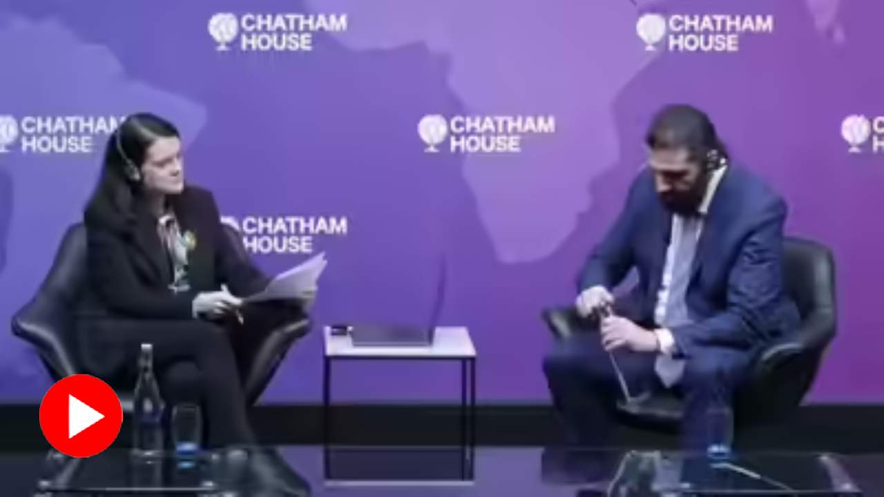 স্থানীয় সংবাদমাধ্যম সূত্রে খবর, মঙ্গলবার লন্ডনের বিশ্বখ্যাত প্রভাবশালী স্বাধীন নীতি গবেষণা সংস্থা চ্যাথাম হাউজ়ে সেখানকার অধিকর্ত্রী ব্রনওয়েন ম্যাডক্সের সঙ্গে উপস্থিত ছিলেন আহমদ-আল-শারা। প্রাক্তন সাংবাদিক ব্রনওয়েনকে সাক্ষাৎকার দিচ্ছিলেন প্রেসিডেন্ট। তেষ্টা পেতে জলের বোতলটি নিয়ে আর খুলতে পারছিলেন না তিনি। পরে ব্রনওয়েনই প্রেসিডেন্টের হাত থেকে বোতলটি নিয়ে ছিপি খুলে দেন। সঞ্চালিকা পরে বোতলটি ফিরিয়ে দিতে মুচকি হাসেন প্রেসিডেন্ট। তার পর আবার কথোপকথনে ব্যস্ত হয়ে পড়েন দু’জনে।