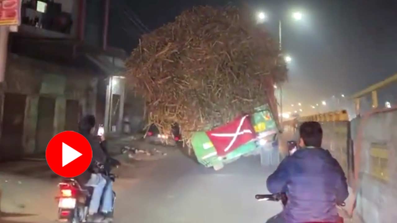 আখের ভারে হেলে পড়ল ট্রাক, উল্টে গেল নিয়ন্ত্রণ হারিয়ে, আটকে গেল ট্রাফিক! উত্তরপ্রদেশের জাতীয় সড়কের ভিডিয়ো ভাইরাল