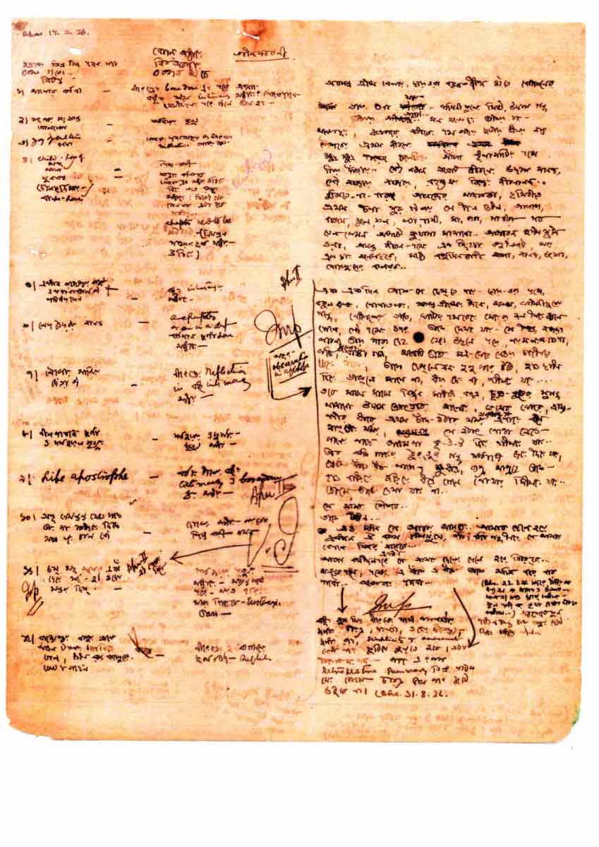 বিভূতিভূষণের উত্তরপুরুষ তৃণাঙ্কুর বন্দ্যোপাধ্যায়ের সযত্ন কিউরেশনের ফসল এই প্রদর্শনী। বিভূতিভূষণের লেখক ও ব্যক্তিজীবন, দুইয়েরই খোঁজ দিয়েছেন তিনি। বিভূতিভূষণের কলম এমনই, লেখার ও-পারের মানুষটি থেকে যান সঙ্গোপনে। নানা স্মারক এখানে হয়ে উঠেছে প্রদর্শ: বিভূতিভূষণের জামা, কলম (মাঝের ছবি), পারিবারিক আলোকচিত্র, পথের পাঁচালী-র খসড়া-সহ (উপরের ছবি) অচেনা-অদেখা অনেক কিছুর খোঁজ। থাকবে সংগ্রহযোগ্য কিছু শিল্পকৃতিও।