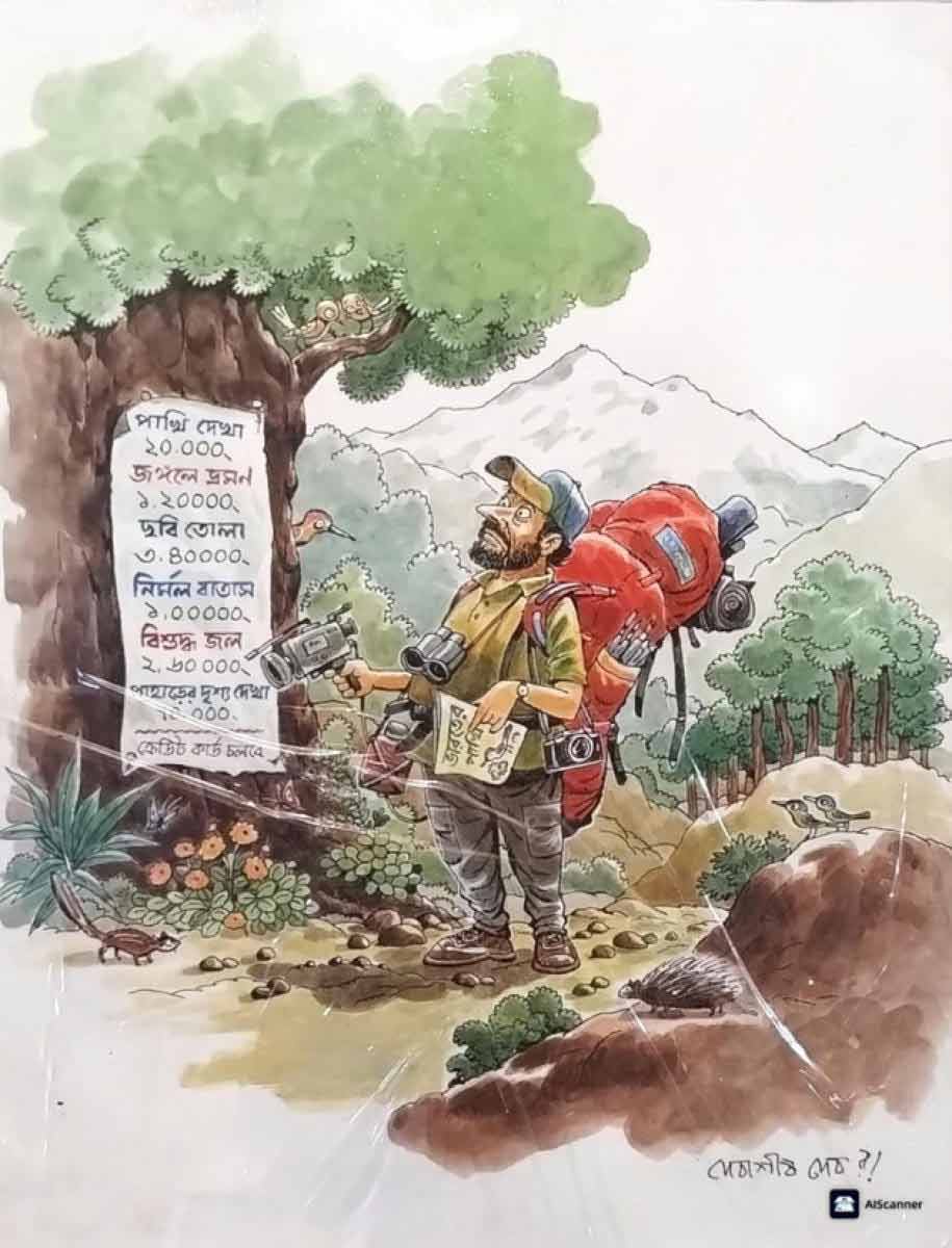 যুগলবন্দি বললেই মনে পড়ে সাঙ্গীতিক জুটি-জুড়িদের কথা। তবে ‘মূলসুর’ই যদি প্রাণভোমরা, তবে কার্টুন আর ক্যারিকেচারেও হতে পারে জমজমাট যুগলবন্দি। সপ্তর্ষি প্রকাশন ও রিড বেঙ্গলি বুক স্টোর এক অভিনব চিত্রপ্রদর্শনীতে মিলিয়েছে অনুপ রায়ের ক্যারিকেচার ও দেবাশীষ দেবের কার্টুনকে। গতকাল থেকে প্রদর্শনী শুরু হয়েছে গ্যালারি চারুবাসনার সুনয়নী সভাগৃহে, চলবে ৩১ মার্চ পর্যন্ত, ২টো-৮টা। তবে আনুষ্ঠানিক উদ্বোধন হবে রবিবাসরীয় সন্ধ্যায়, থাকবেন হিরণ মিত্র ও মুনমুন সেন। কার্টুন ও ক্যারিকেচার নিয়ে এ-হেন আয়োজন যে অভিনব ও ভিন্নস্বাদের তা মানতেই হবে— সঙ্গের ছবিতে সুচিত্রা সেনের ক্যারিকেচার, তার ডান দিকে কার্টুনে পাখি দেখতে আসা মানুষটি খানিক ভ্যাবাচ্যাকা গাছের গায়ে সাঁটা বিজ্ঞপ্তি দেখে: ভ্রমণের পাশাপাশি বিশুদ্ধ জল-হাওয়ার জন্যও গুনতে হবে টাকা! দুই শিল্পীর মোট ৭৫টি কাজ, দেখার পাশাপাশি সংগ্রহের সুযোগও।